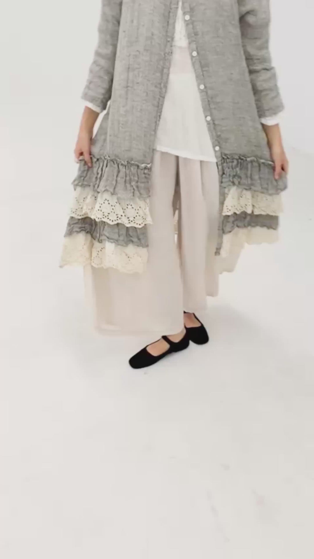 The Florette Coat returns just in time for Fall—crafted from textured linen and trimmed with delicate tiers of cotton lace. With its flowing silhouette, romantic layers, and thoughtful details, Florette feels like poetry you can wear.