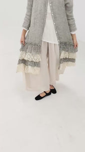 The Florette Coat returns just in time for Fall—crafted from textured linen and trimmed with delicate tiers of cotton lace. With its flowing silhouette, romantic layers, and thoughtful details, Florette feels like poetry you can wear.