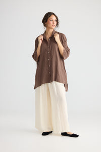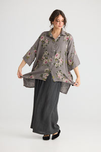 Rosabella Linen T-shirt Dress. Tobacco Bouquet